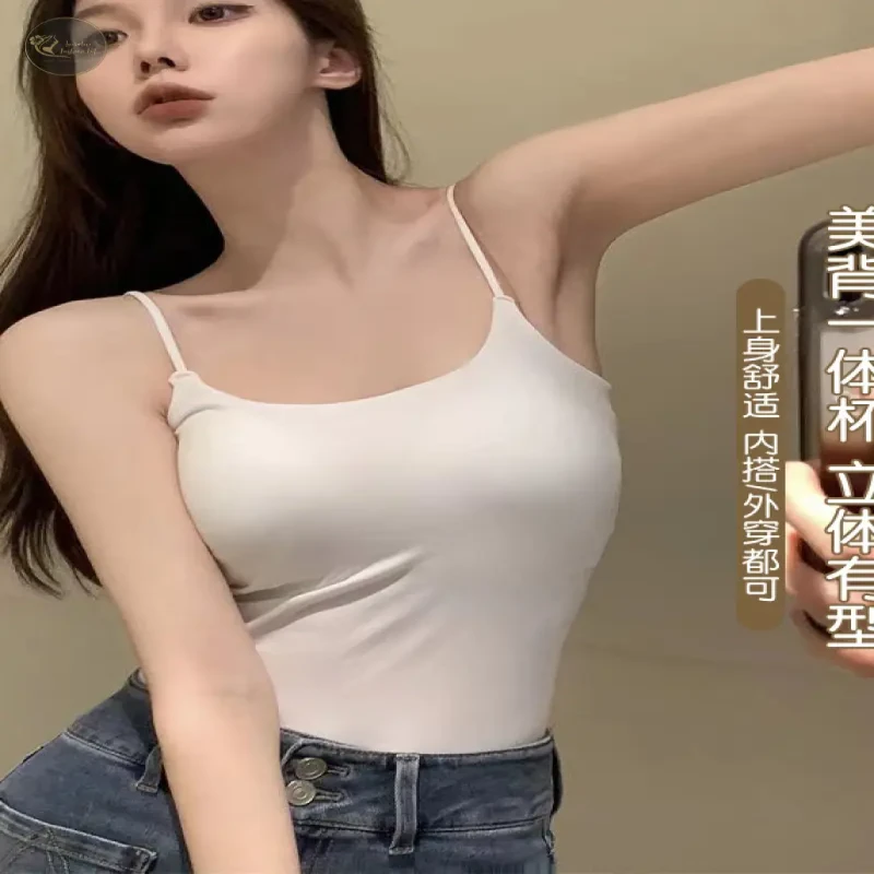 Slim Off Shoulder Crop Top Underwear Casual Tube Tops With Bra Pad Solid Tank Top Basic Spaghetti Fashion Camis